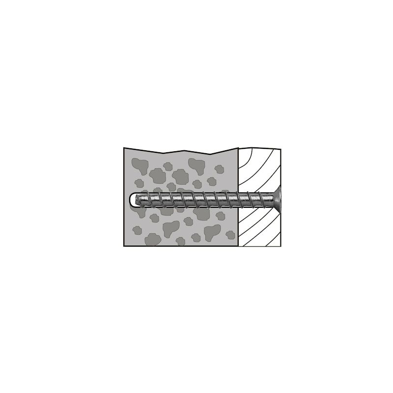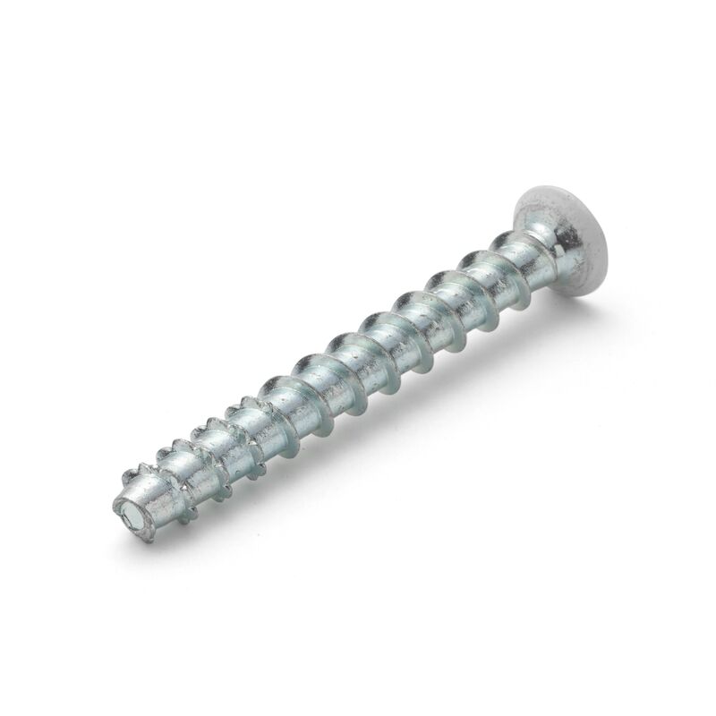 Specialhärdad skruv som skruvas direkt i ett förborrat hål utan plugg. Betongskruven används vid montage i betong. Vit