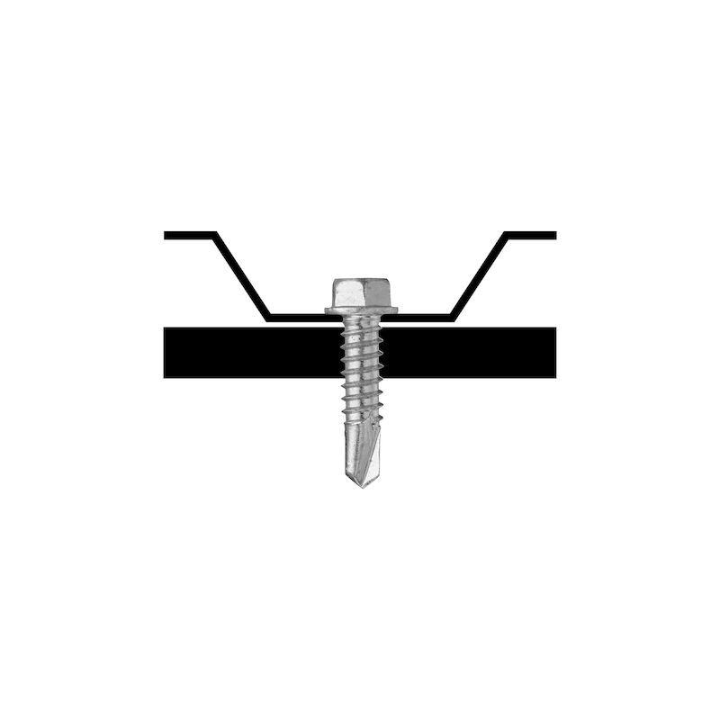Borrspets med anpassad diameter för plåt, borrar i balk upp till 6,4 mm. 6-kantshuvud med fläns för säker idragning.