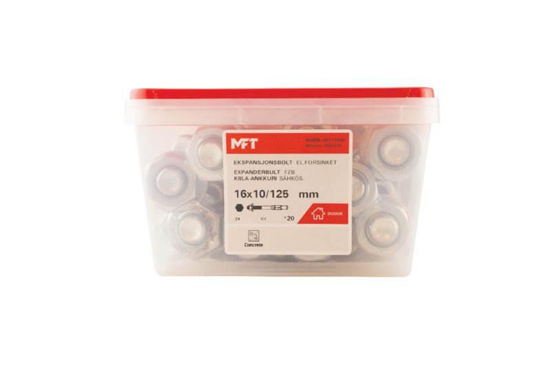 MFT Expanderbult är blankförzinkad. Korrosivitetsklass C1.
