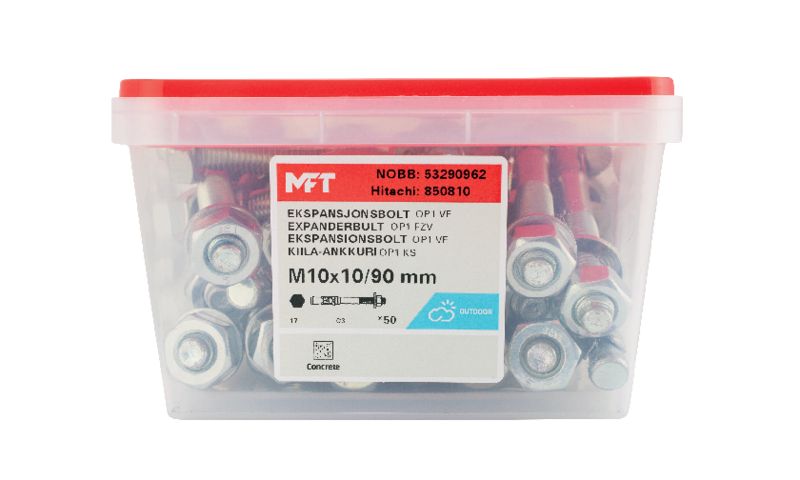 MFT Expanderbult option 1 är tillverkad av härdat stål i kvalitet 9.8 och har en varmförzinkad ytbehandling.