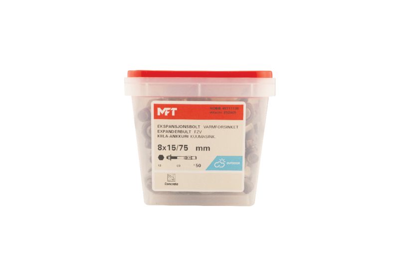 MFT Expanderbult Varmförzinkad är avsedd för inomhus och utomhus bruk. Avsedd för montage av stål, träreglar, beslag, räckverk mm mot underlag av betong. Borrhålet i betongen skall ha samma diameter som expanderbulten, dvs genomsticksmontage. Expandern slås in med hjälp av en hammare, när muttern kommer i kontakt med detaljunderlaget så låses expandern med muttern. När muttern dras åt så glider klipset upp på den koniska delen, som då skapar en expansion.