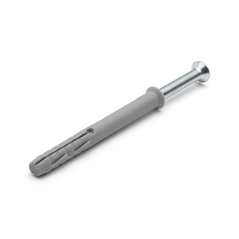 - Monteringsanvisning: Borra ett hål anpassat till storleken på fasadpluggen enligt tabellen nedan. Tryck sedan in fasadpluggen i hålet tills kragen ligger dikt an mot fästdetaljen. Skruva därefter in skruven i fasadpluggen.