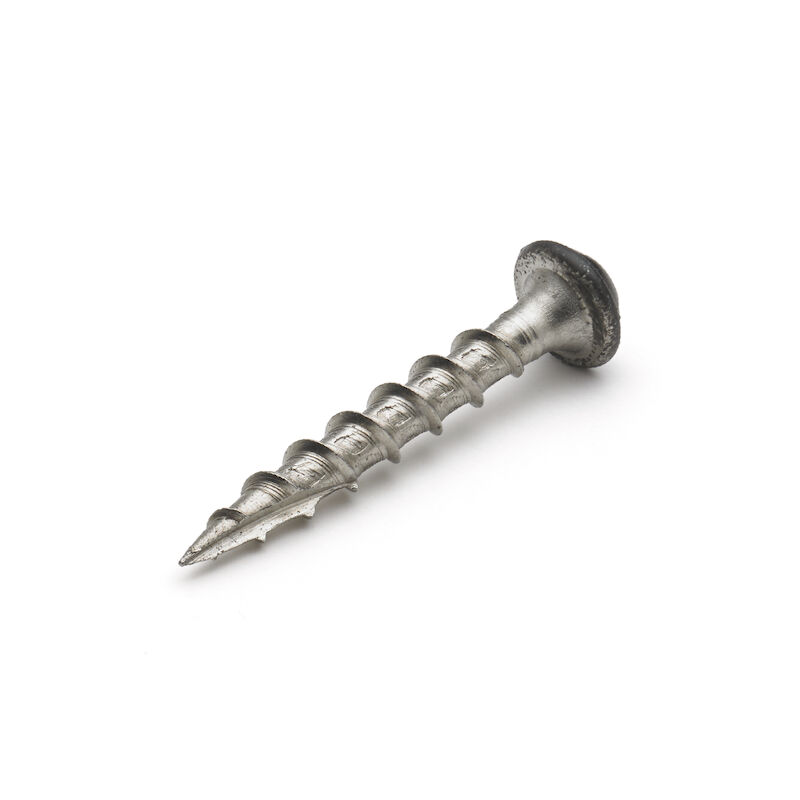 Vass spets och gängor anpassade för förankring i trä. Skruven har även en skärande borrspets för att förhindra sprickbildning i trä.