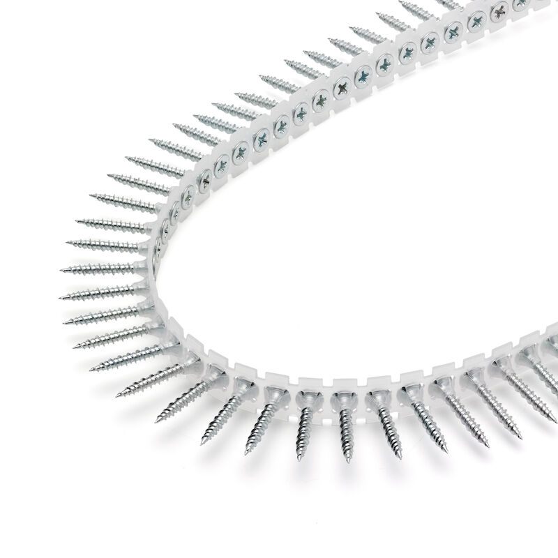 - Funktion: Vass spets med dubbelledande trä- och stålgängor (Hi-low) som griper omedelbart, penetrerar mycket snabbt i trä- och stålregeln och sjunker in i gipsskivan utan att skada pappskiktet.