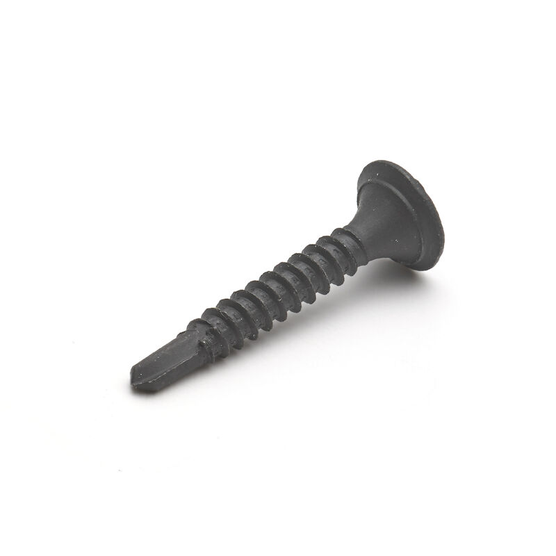 Borrspets med enkelledande stålgängor, borrar mycket snabbt i ståltjocklek upp till 2 mm och sjunker in i gipsskivan utan att skada pappskiktet.