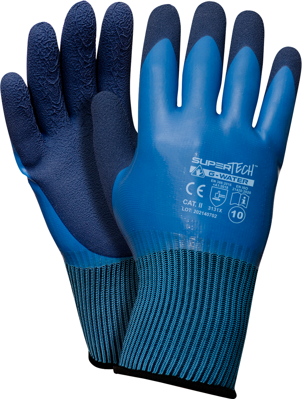 Latexdoppade SuperTECH G-Water är den ultimata lösningen för alla typer av arbeten i våta och fuktiga miljöer.
