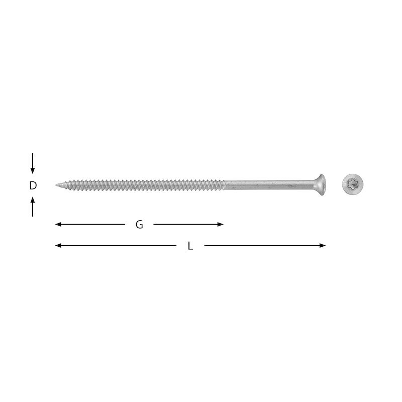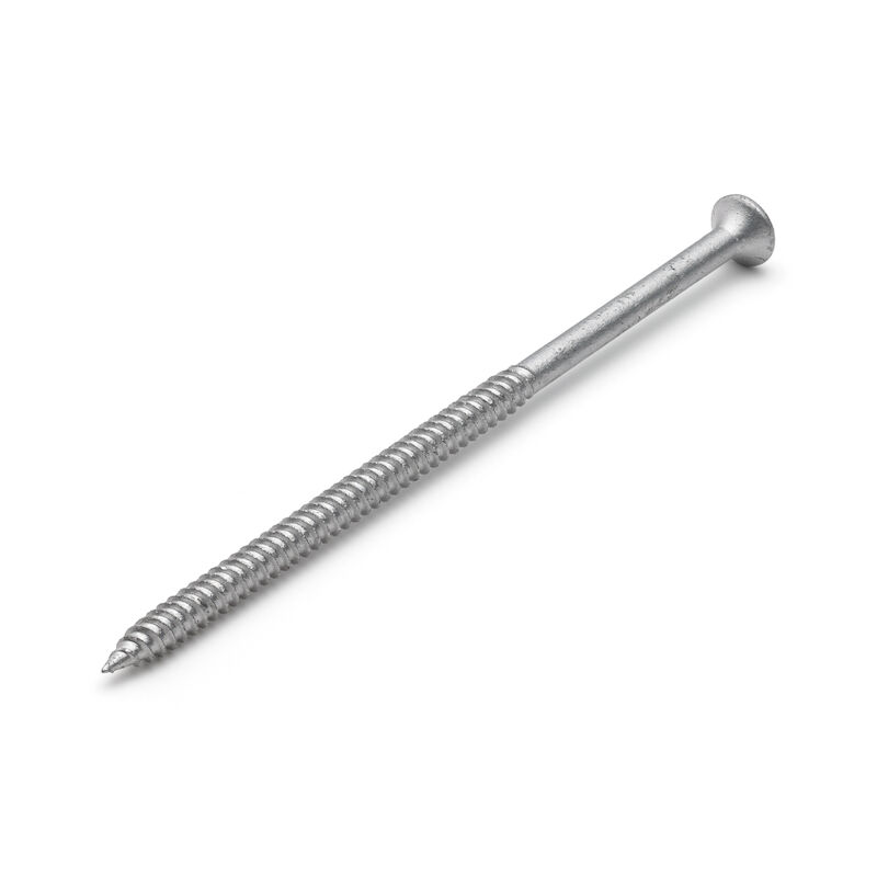 Vass spets och gängor anpassade för förankring i trä- och stålregel. Zincotech Ag, korrosivitetsklass C4, för utomhusbruk.