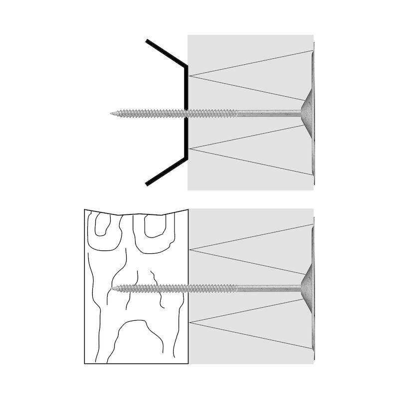 - Funktion: Vass spets och gängor anpassade för förankring i trä- och stålregel.