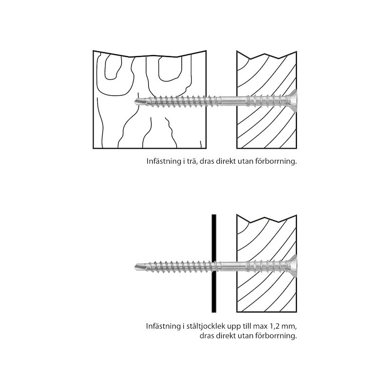 Justerskruv för montage av karmar för innerdörrar samt andra trädetaljer som läkt, reglar etc. mot trä och ståltjocklek upp till 1,2 mm.