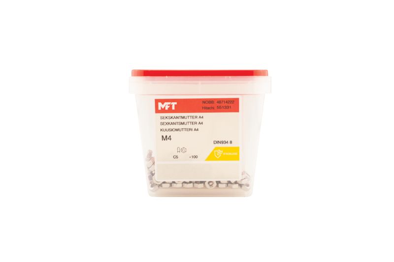 MFT Sexkantsmutter M6M i dim. M4 är tillverkad enligt DIN934/ISO4032 standard av syrafast stål, kvalitet A4-70.