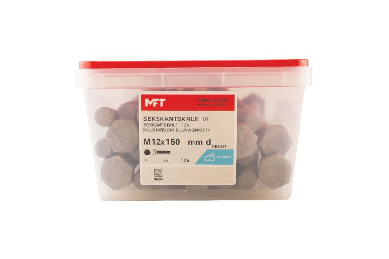 MFT Sexkantskruv M6S är tillverkad enligt DIN931/ISO4014 standard av härdat kolstål kvalitet 8.8. Skruven har en varmförzinkad ytbehandling.