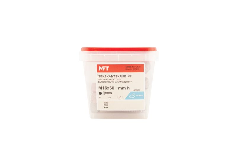 MFT Sexkantskruv M6S helgängad används tillsammans med mutter vid sammanskruvning av detaljer. För inomhus och utomhus bruk.