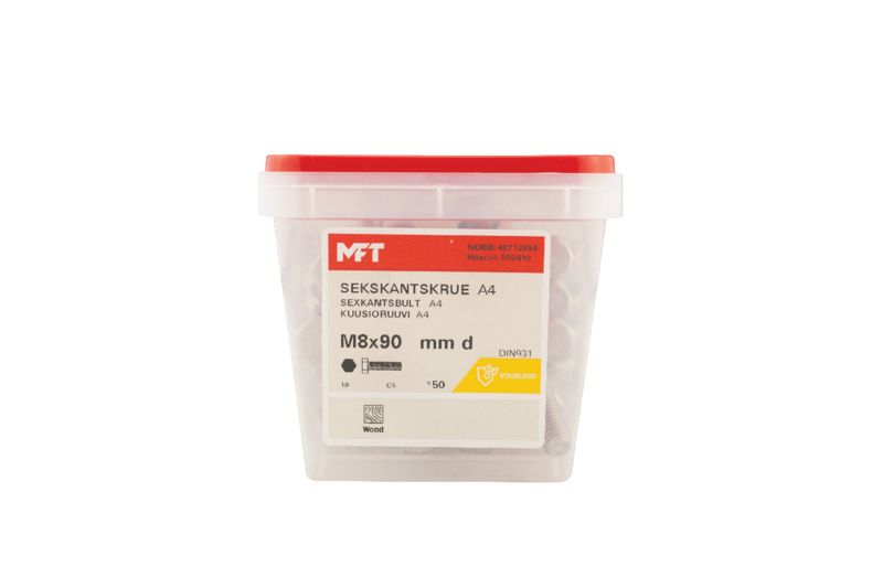 MFT Sexkantskruv M6S är tillverkad enligt DIN931/ISO4014 standard av syrafast stål, kvalitet A4-70.
