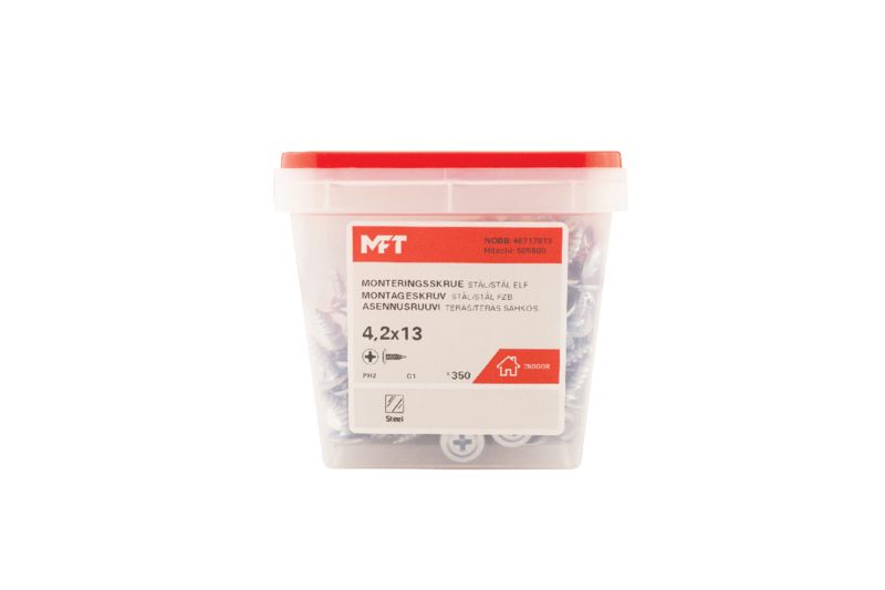 MFT Montageskruv är avsedd för montage mot underlag av trä eller stål mot stål, max. 1,2mm. För inomhus bruk.