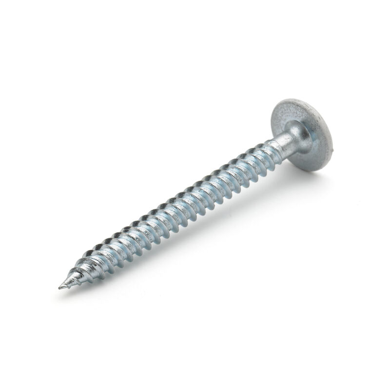 Vass spets med dubbelledande gängor som griper omedelbart i trä- och stålregeln. Lämplig vid montage där ett plant huvud krävs och för att fästa plåt