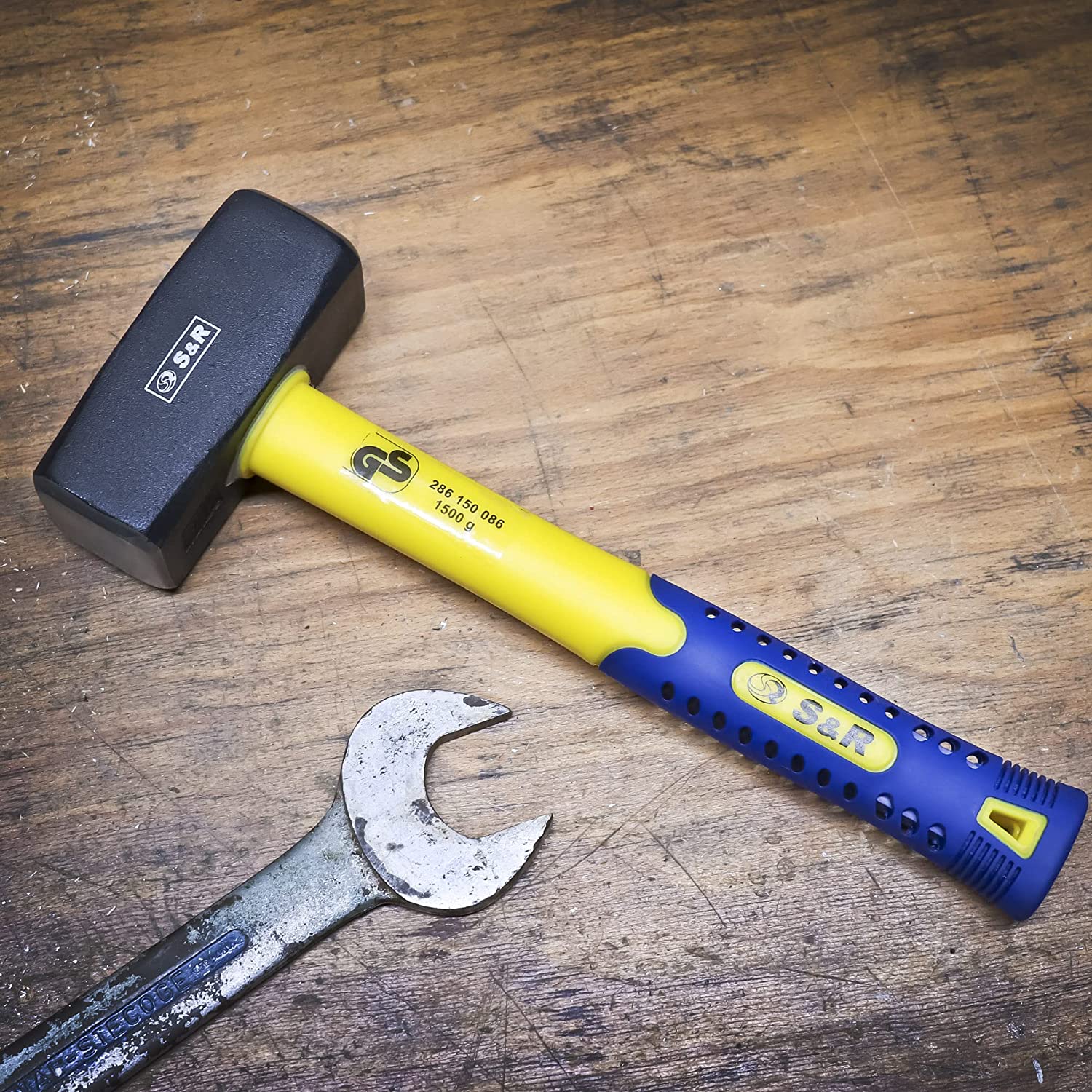 S&R handslägga med ett dubbelkrökt handtag tillverkat av robust glasfiber för professionell användning