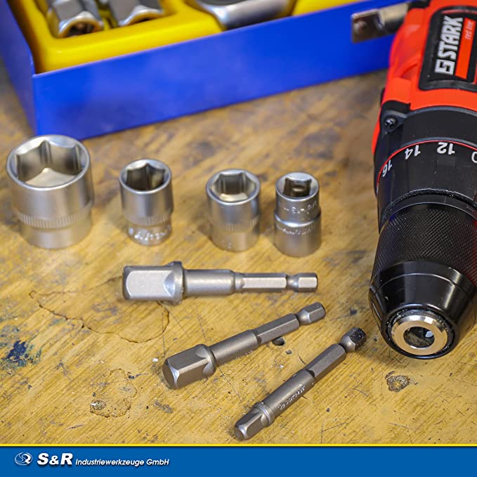S&R Hexagon-adapter set Storlek: 1/4", 1/2", 3/8" för vanliga skruvdragare Antal: 1set/frp