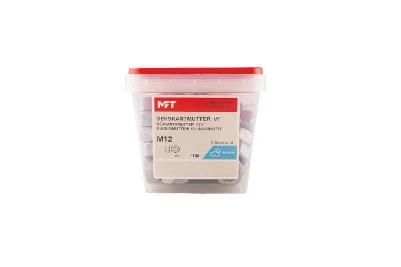 MFT Sexkantsmutter M6M i dim. M12 är tillverkad enligt DIN934/ISO4032 standard av härdat kolstål, kvalitet 8.8. Muttern har en varmförzinkad ytbehandling. Korrosivitetsklass C3.