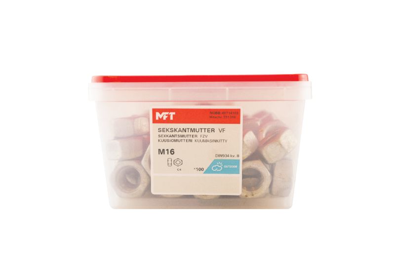 MFT Sexkantsmutter M6M används tillsammans med skruv/bult vid sammanskruvning av detaljer. För inomhus och utomhus bruk.