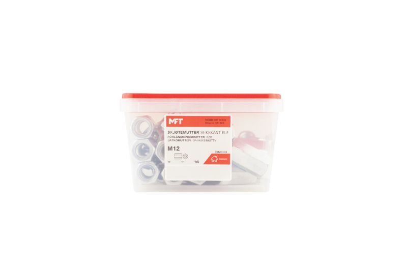 MFT Skarvmutter är avsedd för att förbinda två gängade detaljer med varandra, exempelvis skarvning av gängstänger. För inomhus bruk.